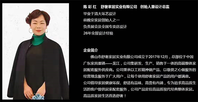 佛山市舒奢家居实业有限公司总部,位于中国广东家具重镇——龙江,公司集研发、生产、销售于一体的高端整体家居配套服务供应商。公司秉承以工匠精神做产品、以敬畏之心做服务的经营理念服务于广大用户,让每个使用舒奢家居产品的用户都满意。公司倡导家居健康环保、舒适有品味、高贵有内涵,专为追求高品质生活的客户提供居家配套服务,公司产品定位现代经典整体家居,让高品质的居家环境来展现高品质的生活要求。